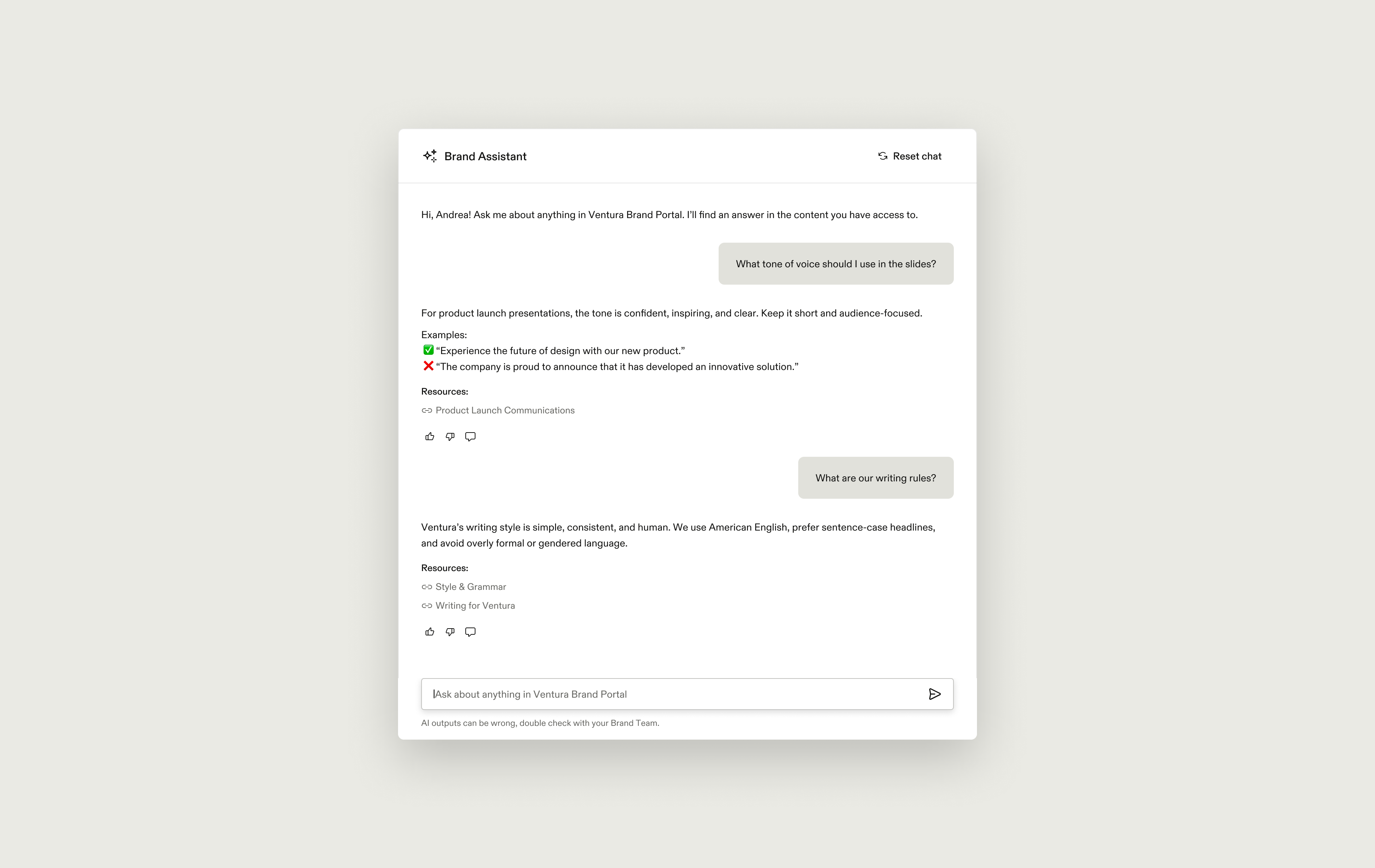 Early versions answered questions confidently, even when brand guidelines were open to interpretation.